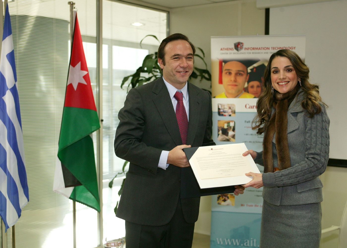 أثينا - ضمن زيارة العمل التي يقوم بها جلالة الملك عبدالله الثاني إلى اليونان اليوم تسلمت جلالة الملكة رانيا العبدالله 14 منحة دراسية لطلاب أردنيين مقدمة من جامعة اثينا لتكنولوجيا المعلومات وبالتعاون مع مؤسسة كوكاليس التعليمية.