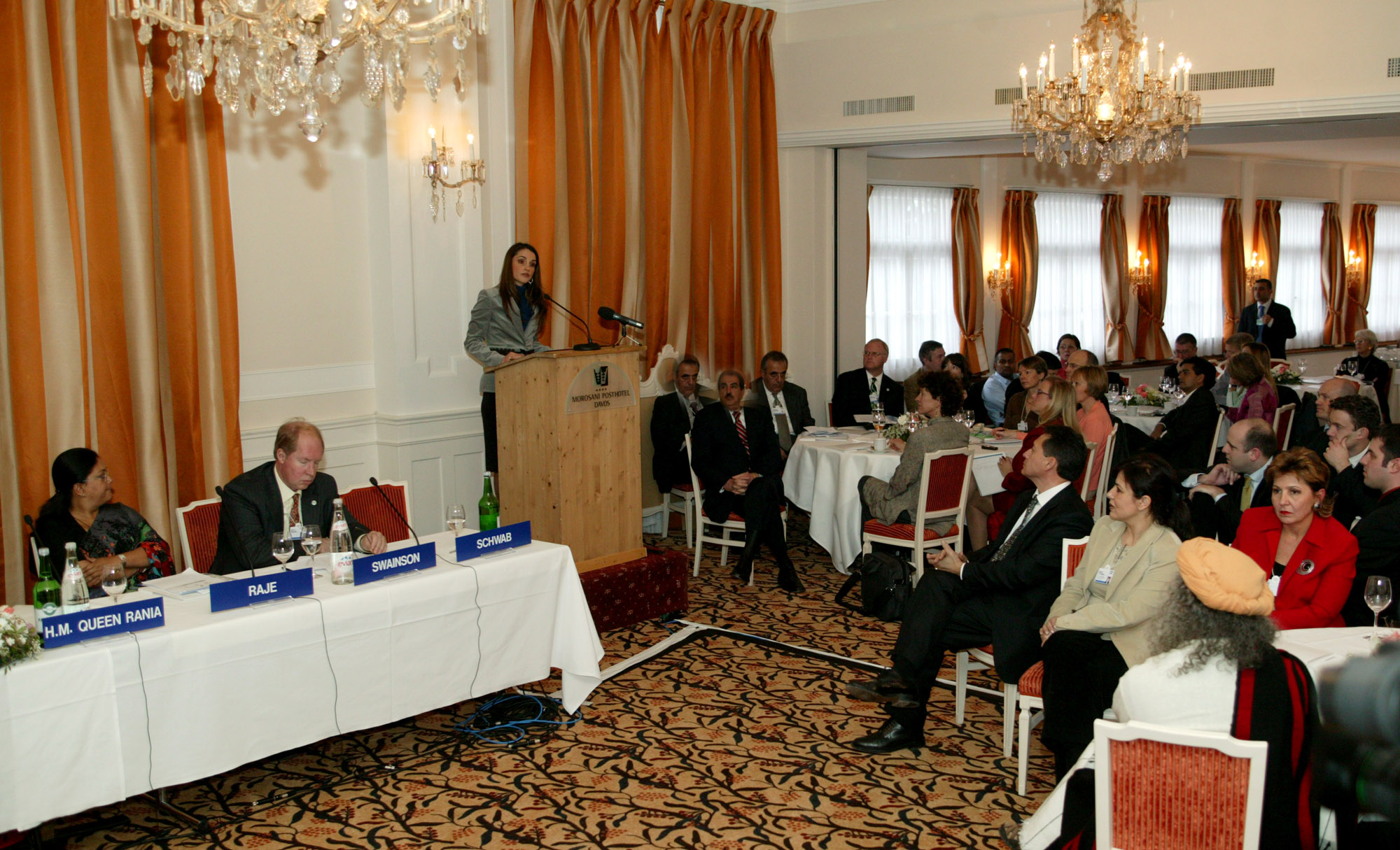 جاء ذلك في كلمة لجلالتها حول التعليم ومبادرة التعليم الأردنية خلال جلسة ضمن فعاليات المنتدى الاقتصادي العالمي تحت عنوان "مبادرة التعليم العالمية: نقل التعليم عن طريق الشراكة بين القطاعين العام والخاص" والتي حضرتها سيدة مصر الأولى سوزان مبارك.