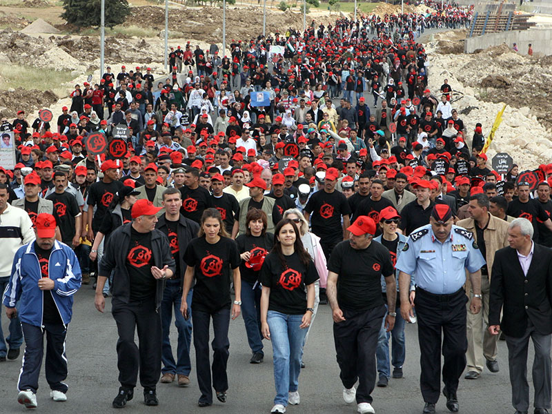 عمان - في مسيرة شعبية حاشدة حملت شعارات بينها "السرعة جريمة لا تبرر بالقضاء والقدر"، "كل أسبوع خمسة أطفال يقتلون في حوادث مرورية"، و"كل تسع ساعات يقتل مواطن أردني بحادث"، وللحد من ذلك شاركت جلالة الملكة رانيا العبدالله اليوم الالاف من أطفال وشباب وشابات الأردن في مسيرة "كفى" التي نظمتها الجمعية الملكية للتوعية الصحية.