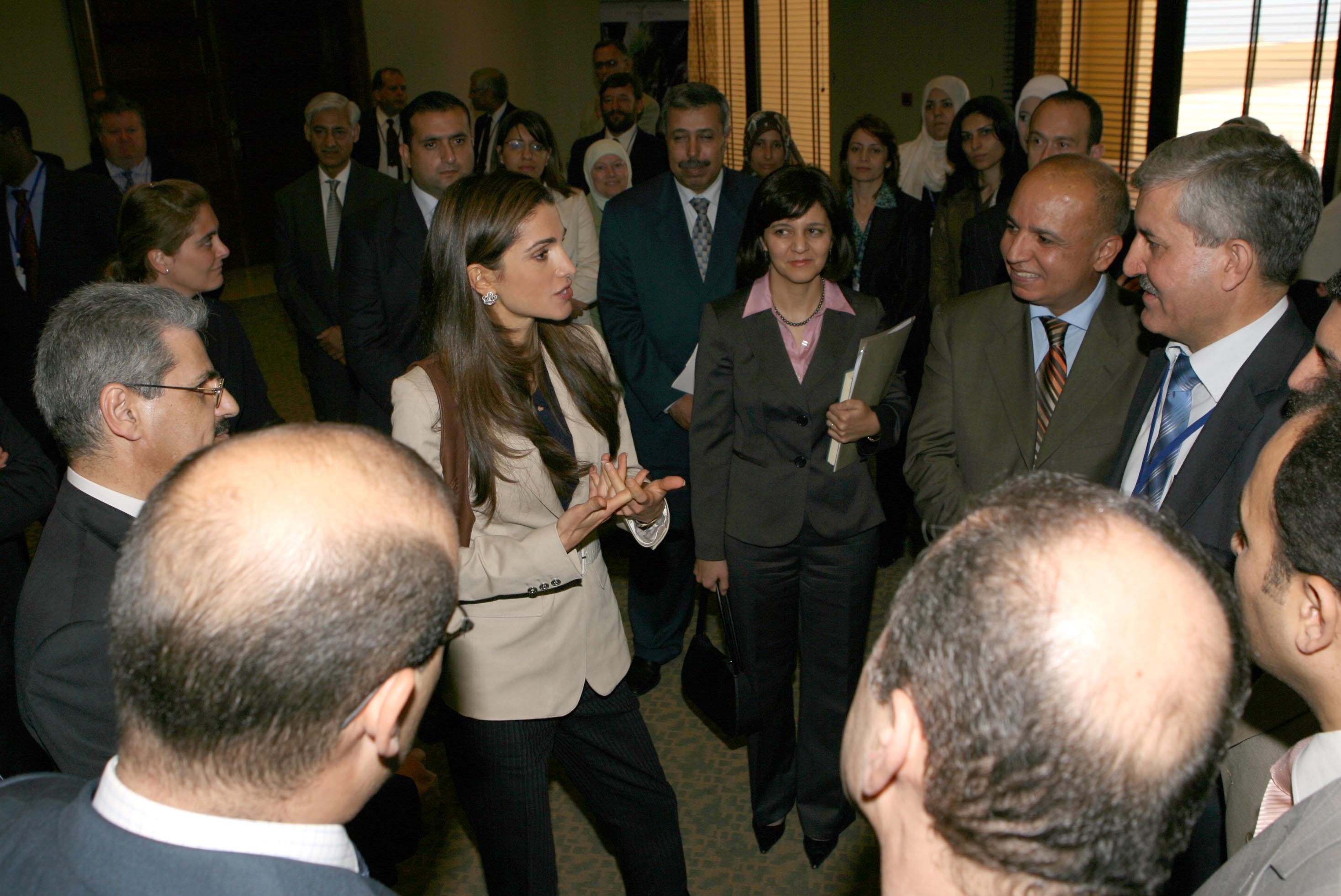 البحر الميت - ثمرة لجهود جلالة الملكة رانيا العبدالله في فتح قنوات التعاون بين المؤسسات الاكاديمية الدولية والاردنية بهدف تعزيز المجالات التعليمية على مستوى المدارس والجامعات شاركت جلالتها اليوم بافتتاح المؤتمر السنوي الرابع لتجمع الشبكات العالمية للتعليم الذي تنظمه جامعة (ام أي تي) الامريكية بالتعاون مع الجامعة الاردنية في مركز الملك الحسين بن طلال للمؤتمرات في البحر الميت.