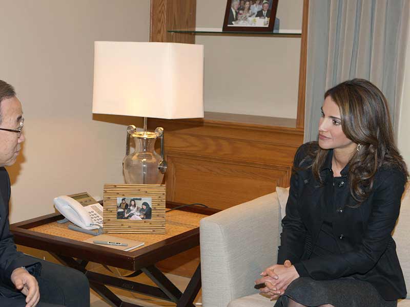 وتأتي زيارة الأمين العام للأمم المتحدة للأردن في اطار جولة يقوم بها على عدد من دول المنطقة للحث على تعجيل وتيرة الجهود الديبلوماسية وضمان وصول المساعدات الانسانية لمن يحتاجها في القطاع. وأعربت جلالتها عن أملها في استمرار جهود الأمين العام لوقف العدوان على غزة.