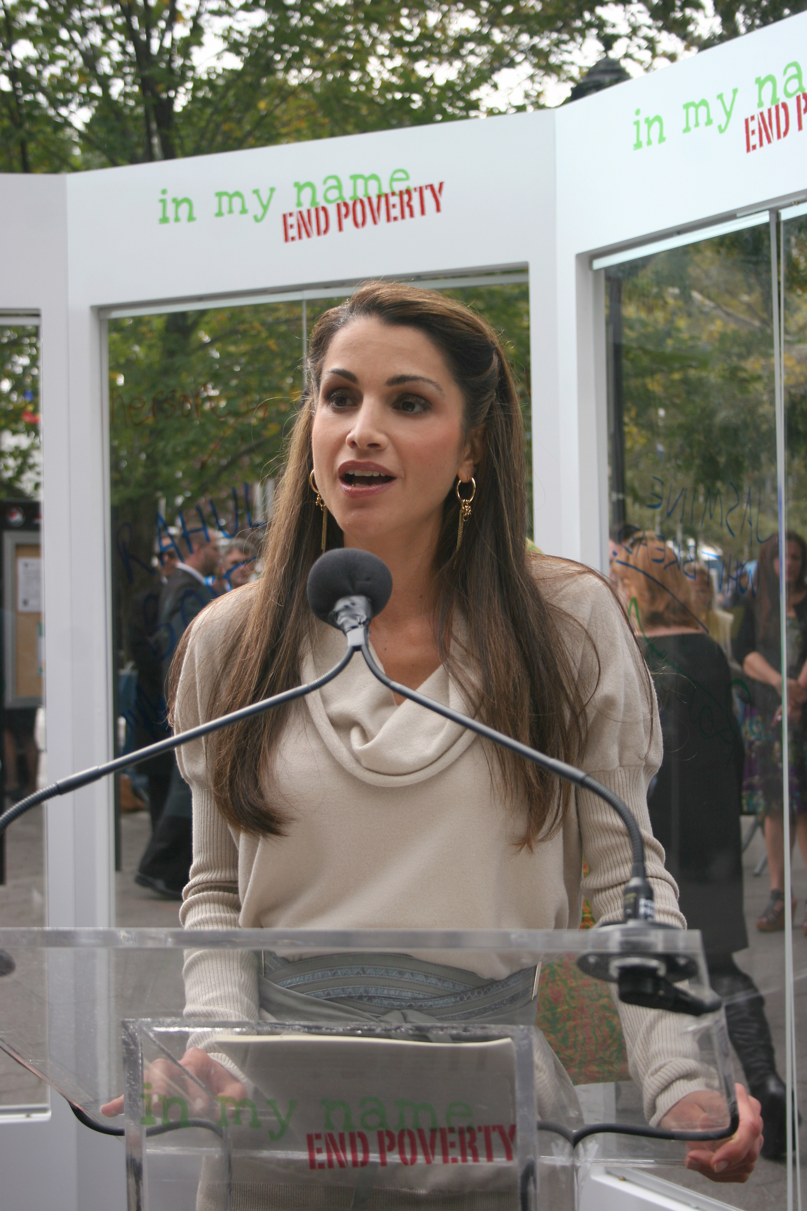 وقالت جلالتها: "نصف الوعد ليس وعداً على الاطلاق ... فشلُنا في الحفاظ على وعدنا للضعفاء يجب أن يحرك فينا أعمق المشاعر، يجب أن تلهم أبسط غرائز العدالة عندنا ... أريد أن يذهب جميع الأطفال إلى المدرسة. باسمي، أريد أن يكون الهواء الذي يتنفسونه، والطعام الذي يأكلونه، والماء الذي يشربونه، نظيفا ووفيرا. باسمي، أريد أن تحيا الأمهات بعد الولادة، أن يقمن بتحصين صغارهن ويشاهدن بناتهن يكبرن ... أريد اسمي أن يكون جزءا من ذلك الجيل العظيم الذي رحب بالغريب جارا وساهم في تخليص الانسانية من الفقر ... باسم المساواة ... باسم العدالة ... وباسم السلام ... باسمي وباسمكم، دعونا نفي بوعد الألفية".