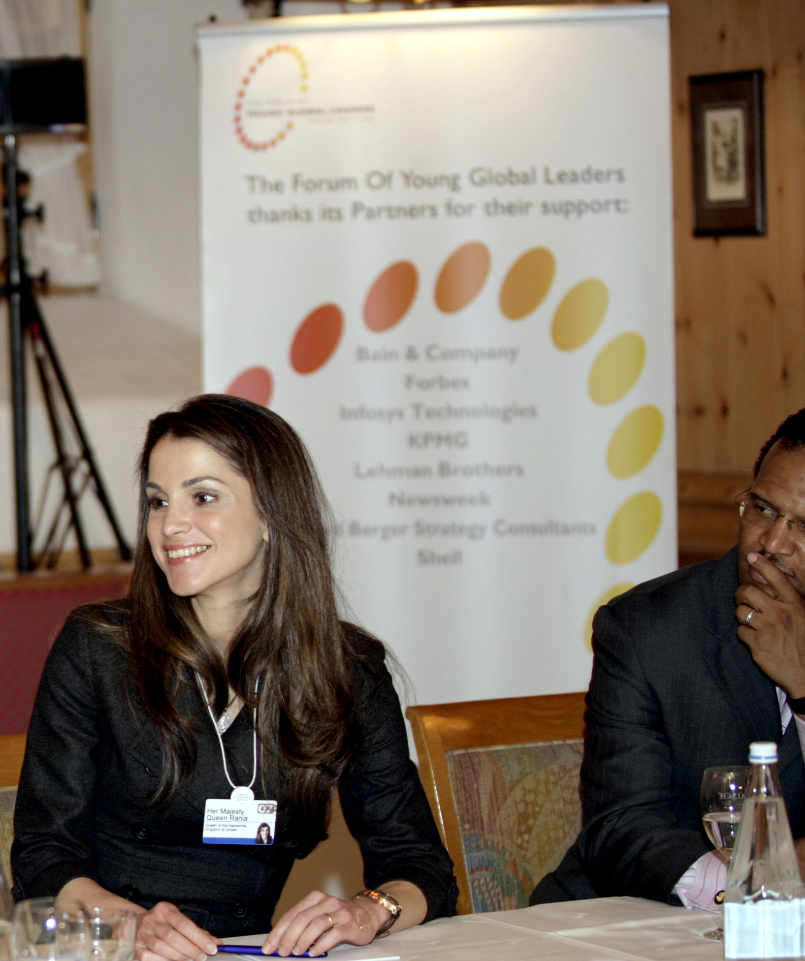 دافوس - ضمن مشاركة جلالة الملكة رانيا العبدالله بالمنتدى الاقتصادي العالمي الذي يعقد في سويسرا التقت جلالتها اليوم عددا من أعضاء منظمة القيادات الشابة في العالم حيث تركز الحديث حول القيادة باعتبارها القدرة على إحداث التغيير الايجابي في المجتمع الذي تعيش به أو خارجه.