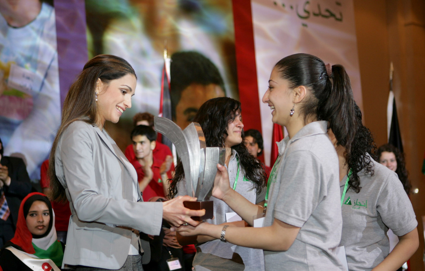 عمان - سلمت جلالة الملكة رانيا العبدالله سفيرة برنامج إنجاز العرب في المنطقة العربية الجوائز للطلبة العرب الفائزين بمسابقة "أفضل شركة طلابية" والتي أطلقها برنامج إنجاز العرب حيث تم اختيارهم من بين الدول العربية التي تتبنى البرنامج وهي الأردن، وفلسطين، ومصر، ولبنان، والبحرين، والكويت، ودولة الإمارات العربية المتحدة، وسلطنة عمان.