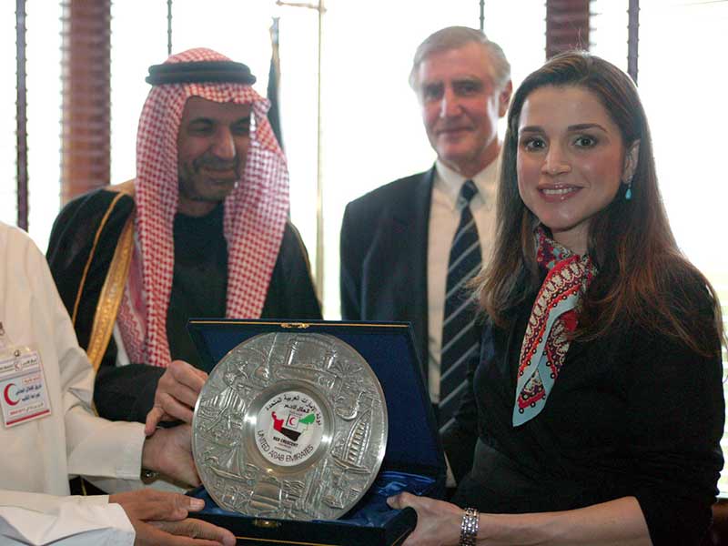 وخلال لقاء جلالتها مع عدد من أعضاء الفريق الطبي تبادلت الحديث مع رئيس الوفد الدكتور صالح الطائي مدير إدارة الإغاثة والطوارئ في الهلال الأحمر الإماراتي حيث استمعت إلى شرح عن نشاطات وأهداف الفريق وما قام به في الأردن من إجراء عمليات قلب مجانية للفقراء والمحتاجين وذلك بالتنسيق مع وزارة الصحة الأردنية.
