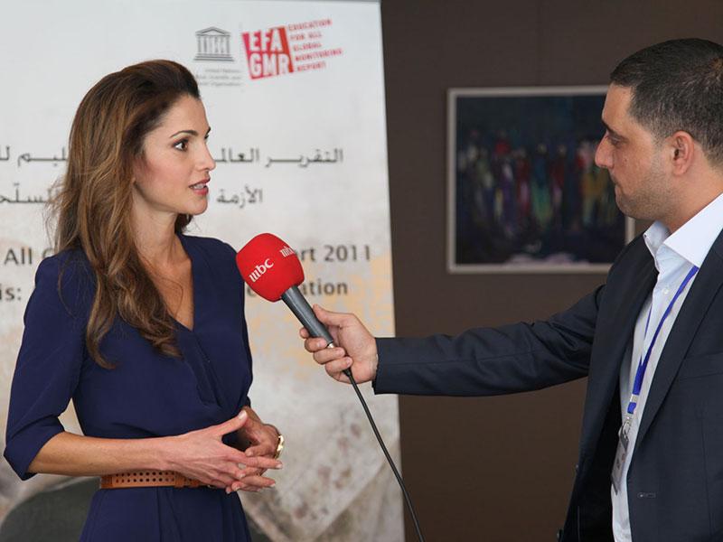 منتهى الرمحي: جلالة الملكة رانيا العبدالله أول شيء أشكرك على اتاحة هذه الفرصة لنا باللقاء معك.