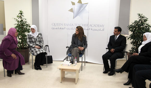 والتقت جلالة الملكة رانيا مع مجموعة من المعلمات والمعلمين والمدراء والمشرفين ممن استفادوا من برامج الاكاديمية التدريبية وتبادلت الحديث معهم حول الاثار المستفادة والتحديات التي تعترضهم على صعيد تطبيق ما تم التدرب عليه.