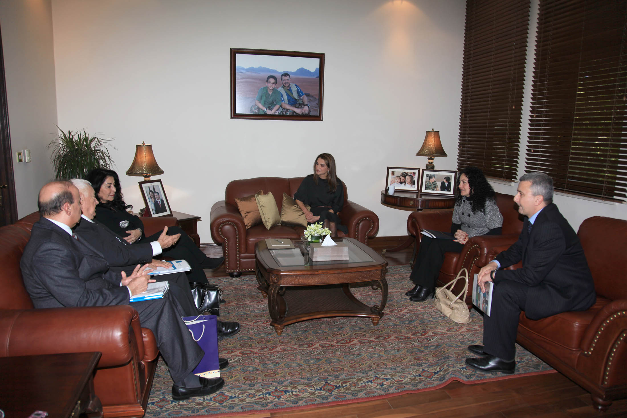 التقت جلالة الملكة رانيا العبدالله اليوم مع عدد من أعضاء اللجنة التنفيذية لمؤسسة (من أجل المستقبل) بهدف الاطلاع على المشاريع والبرامج المنفذة في الأردن بشراكة مع مؤسسة نهر الأردن والمجلس الوطني لشؤون الأسرة.