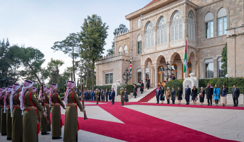 ولدى وصول جلالة الملك، ترافقه جلالة الملكة رانيا العبدالله إلى باحة قصر رغدان، كان في استقباله سمو الأمير الحسين بن عبدالله الثاني ولي العهد، وعدد من أصحاب السمو الأمراء والأميرات.