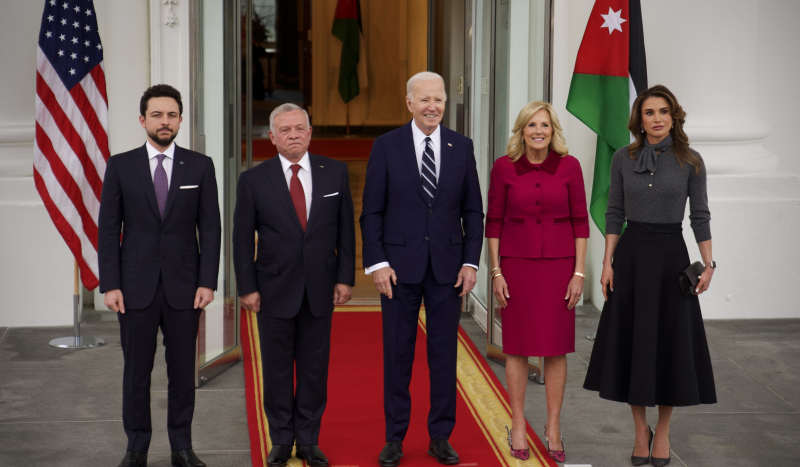 وكان جلالة الملك، وصل إلى البيت الأبيض ترافقه جلالة الملكة رانيا العبدالله وسمو الأمير الحسين بن عبدالله الثاني ولي العهد، إذ كان في استقبالهم الرئيس الأمريكي جو بايدن والسيدة الأولى جيل بايدن.