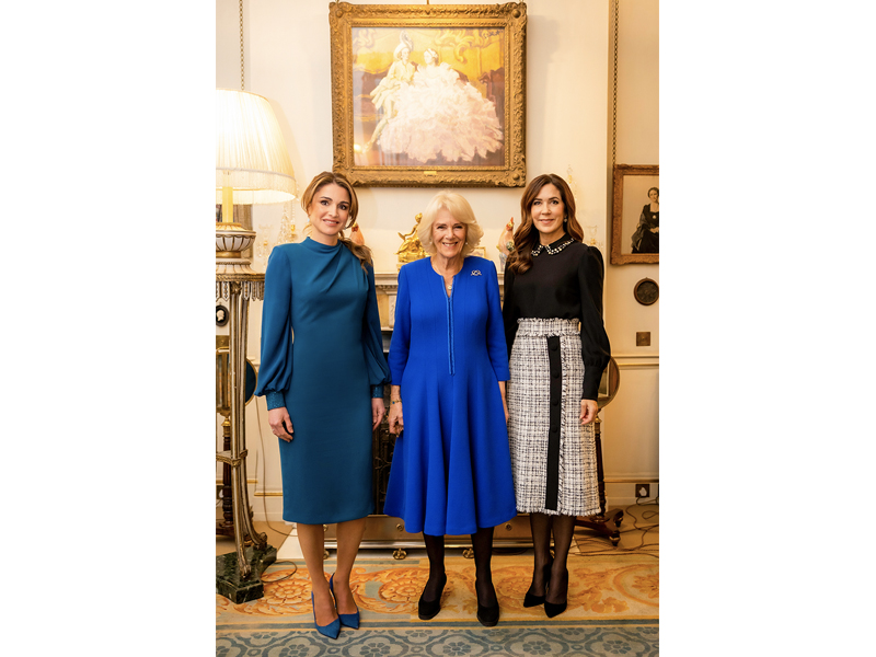التقت جلالة الملكة رانيا العبدالله اليوم في لندن جلالة الملكة القرينة كاميلا التي استقبلتها إلى جانب الأميرة ماري زوجة ولي عهد الدنمارك في كلارنس هاوس.