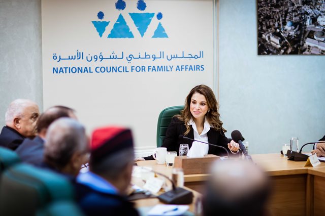 خلال اجتماع مع اللجنة الوطنية في المجلس الوطني لشؤون الأسرة جلالة الملكة رانيا العبدالله تؤكد ضرورة معالجة الثغرات القانونية والاجتماعية والتنسيقية في منظومة الحماية من العنف الاسري