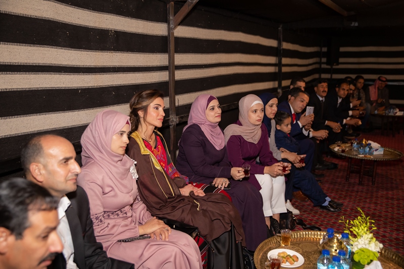 وخلال الافطار الذي أقيم في مخيم عين لحظة السياحي، تبادلت جلالتها الحديث مع الحضور ومن بينهم مجموعة من الشباب المهندسين كانت جلالتها التقتهم مؤخراً في عمان ويبلغ عددهم 35 مشاركا في دورات لغة انجليزية بالتنسيق مع مكتب جلالة الملكة رانيا العبدالله بهدف تطوير مهارات الشباب حديثي التخرج في الطفيلة وزيادة فرصهم للتوظيف.