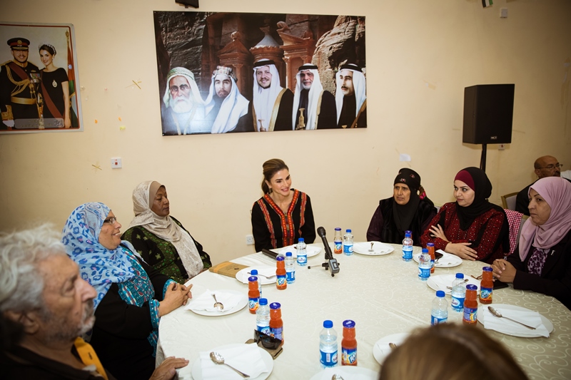 التقت جلالة الملكة رانيا العبدالله اليوم في مركز شابات الحسا النموذجي في محافظة الطفيلة عدداً من رؤساء الجمعيات ومستفيدين ومستفيدات من مبادرة تمكين الاسر محدودة الدخل التي جاءت بتوجيهات من جلالة الملك عبدالله الثاني، وبدعم من الديوان الملكي الهاشمي بالتنسيق والمتابعة مع جمعية مراكز الانماء الاجتماعي وبالشراكة مع 16 جمعية خيرية في محافظة الطفيلة.