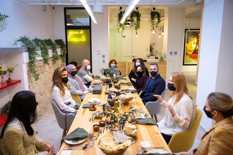 دعما للمنتجات المحلية وأصحاب الأفكار الريادية المبتكرة من الشباب، التقت جلالة الملكة رانيا العبدالله اليوم في مقر مؤسسة "انت ورك" في جبل عمان مع مجموعة من رواد الأعمال الشباب ومؤسسات المجتمع المدني والحرفيين وداعمي المنتجات المحلية.