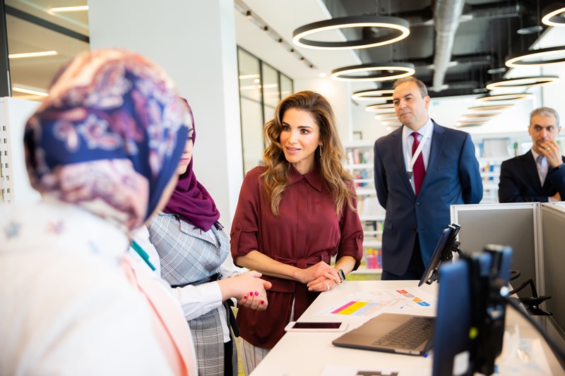 خلال زيارة اليوم إلى مقر أكاديمية الملكة رانيا لتدريب المعلمين في حرم الجامعة الأردنية، تابعت جلالة الملكة رانيا العبدالله سير عمل الأكاديمية وتجولت في عدد من مرافقها. كما التقت العاملين وعدداً من المعلمين الطلبة واستمعت منهم عن تأثير التدريب الذي يحصلون عليه في تطوير مهاراتهم.