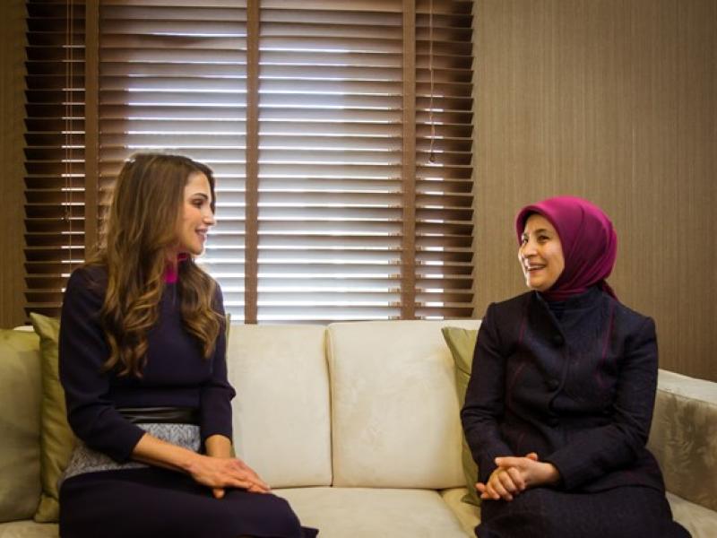 التقت جلالة الملكة رانيا العبدالله اليوم في عمان مع زوجة رئيس الوزراء التركي سارا داوود اغلو.