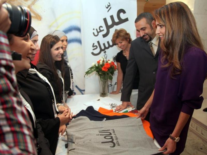 بصفتها سفيرة برنامج انجاز العرب تجولت جلالة الملكة رانيا العبدالله بين اقسام معرض اعمال فتيات وشباب من 12...