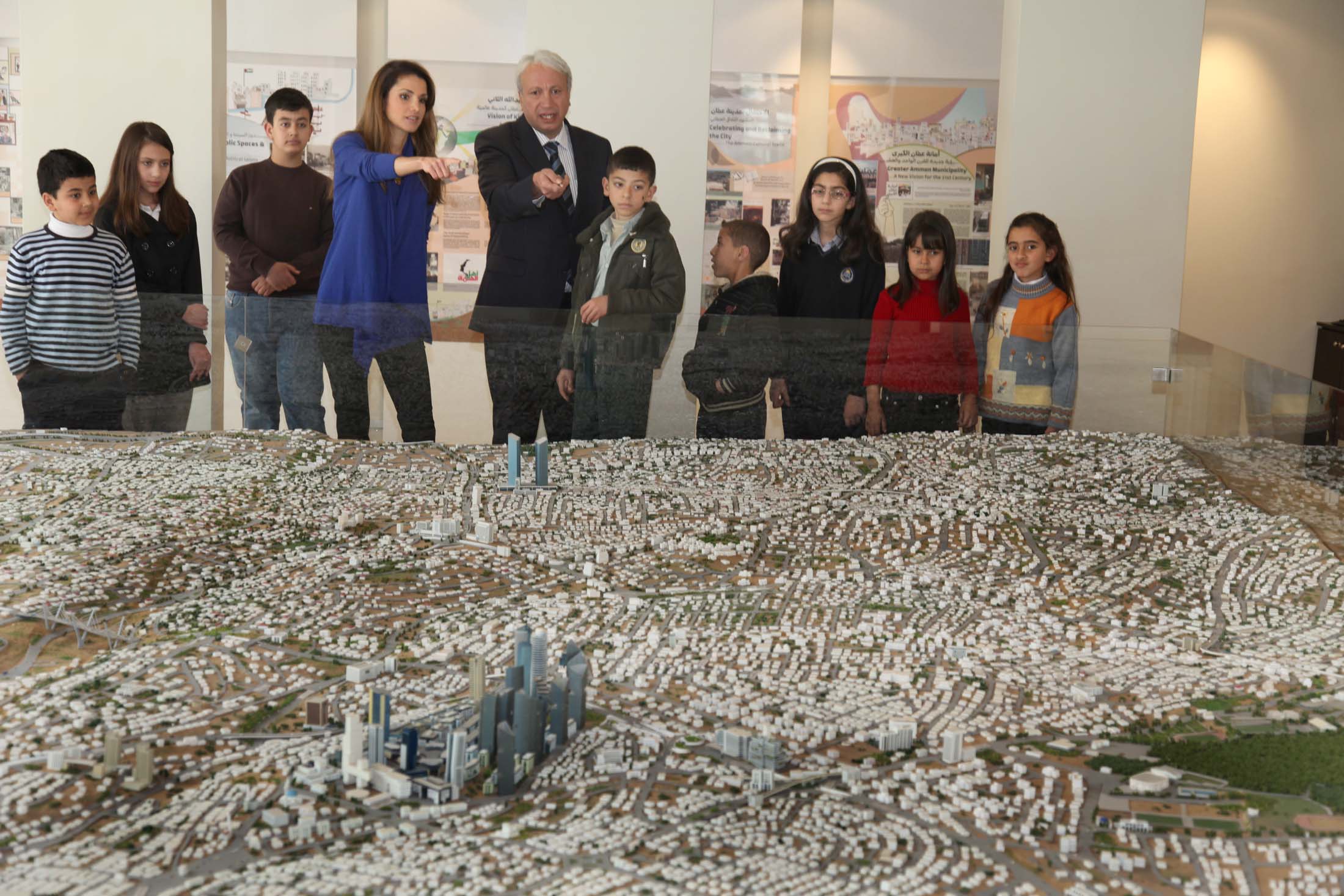 وتجولت جلالتها يرافقها أمين عمان الكبرى/ رئيس لجنة الأمانة المهندس عمار الغرايبة بين مرافق المعرض الذي يشتمل على مجسم للمدينة بمساحة 48 مترا مربعا يبرز معالم عمان، بما فيها من بنى تحتية وأماكن تاريخية ومعالم تجارية وثقافية وعمرانية حضارية. وتوقفت إلى جانب مجموعة من الأطفال عند ركن الأطفال في المعرض مستفسرة جلالتها عن أهدافه في مساعدة الأطفال للتعرف على مدينتهم وحبها وقراءة الخرائط، حيث يحتوي على مجسم لدارة الملك عبدالله الثاني للثقافة والفنون وخارطة لمدينة عمان تتضمن كافة المواقع الهامة تم تطويرها بمشاركة الأطفال.