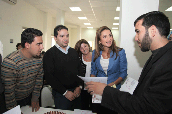 وشاهدت جلالتها بعض الوسائل التعليمية التي تم انتاجها في التدريب من قبل المعلمين والمعلمات والتي تساعد على ايصال المعلومة للطلبة من خلال التطبيق وليس التلقين. و اطلعت على اعمال الطلبة الكتابية الناتجة عن تطبيق البرنامج في المدارس المشاركة.