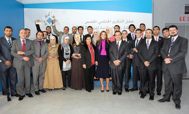 وفي بداية حفل التكريم أشادت سمو الأميرة سمية بالرعاية الكريمة لجلالة الملكة رانيا للاحتفال بالفائزين بالدورة الخامسة للجائزة، مشيرة إلى أهمية المسابقة في رفد القطاعات الوطنية بالكفاءات الاردنية المؤهلة والقادرة على دفع عجلة التنمية قدماً.