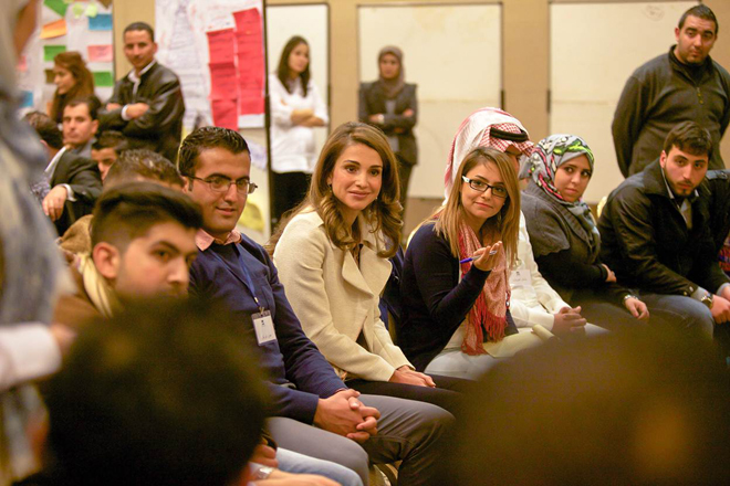 انضمت جلالة الملكة رانيا العبدالله اليوم الى مناقشات 120 شاباً وشابة من مختلف انحاء المملكة من الفاعلين في برامج مؤسسة نهر الاردن الشبابية التي نفذتها على مدى 15 عاما الماضية، وهدفت النقاشات الى تحديد ملامح استراتيجية المؤسسة للتنمية الشبابية للخمس سنوات القادمة.