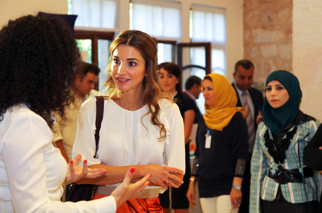 تجولت جلالة الملكة رانيا العبدالله رئيسة مجلس أمناء مؤسسة نهر الأردن اليوم في اجنحة المعرض السنوي للحرف اليدوية الذي تنظمة المؤسسة سنويا في صالة العرض التابعة لها في جبل عمان.