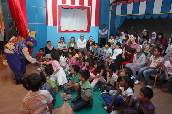 وشاركت جلالتها حوالي أربعين طفلا في الاستماع إلى قصة "الشاطر حسن" وشاهدت جزءاً من المسرحية مع الأطفال.