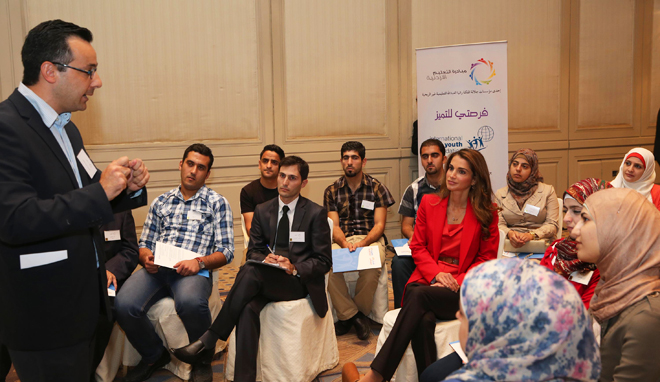 شاركت جلالة الملكة رانيا العبدالله اليوم في اطلاق برنامج "فرصتي للتميز" الذي تنفذه إحدى مؤسسات جلالة الملكة رانيا العبدالله التعليمية غير الربحية بهدف تعزيز فُرص التوظيف لخريجي تكنولوجيا المعلومات والاتصالات حديثي التخرج، او ممن مضى عامين على تخرجهم بحد أعلى.