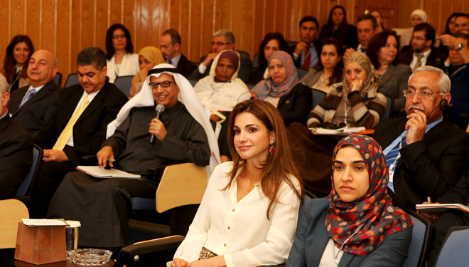 وخلال الجلسة الافتتاحية للورشة التي تعقد على مدار يومين، قالت جلالة الملكة رانيا العبدالله :"نحن بحاجة لاستراتيجيات وأهداف جديدة تصاغ حسب أولويات الأفراد، استراتيجيات تنموية تمكن الإنسان العربي وتواكب طموحاته."