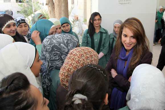 واستهلت جلالتها الجولة بزيارة فجائية لمدرسة السلط الثانوية للبنات لتفقد سير الدراسة فيها وتبادل الحديث مع المعلمات والطالبات.