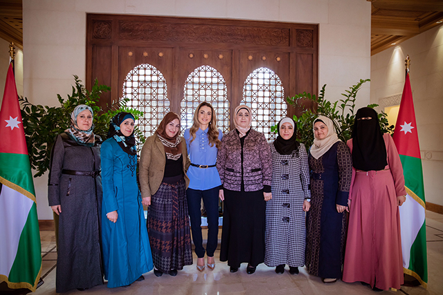التقت جلالة الملكة رانيا العبدالله اليوم في عمان مجموعة من سيدات محافظة معان الناشطات في العمل الاجتماعي والتطوعي، وعبرت جلالتها عن اعجابها بجهودهن في القضايا الاسرية والتنشئة الاجتماعية.