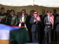 Their Majesties King Abdullah and Queen Rania, HRH Crown Prince Hussein, other members of the Royal family, senior officials and officers take part in a ceremony to receive the body of Sharif Ali Ben Zeid Al Oun, who was killed on Wednesday in the line of …