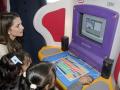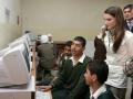 Looks on as two forth-grade students show Her Majesty how to use a program on the computer, during her visit to the Al Shgeig Primary School in the village of Al Shgeig, near Madaba Al Shgeig, Jordan / September 27, 2006 طلاب الصف الرابع في مدرسة الشقيق …