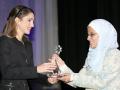 Presents one of the nation's five distinguished teachers, chosen from more than 1,100 nominees, with the Queen Rania Award for Distinguished Teacher 2006, during a ceremony marking Jordan's observance of World Teacher's Day on October 5, 2006. Amman, …