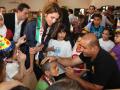 Interacting with orphans at the SOS village in Aqaba, and participates in some of the their activities. Aqaba, Jordan/ June 25, 2010 تشارك مجموعة من أطفال مراكز أيتام عمان جانباً من نشاطاتهم خلال زيارة للعقبة جاءت استجابة من جلالتها لمطلب أحدهم حين …