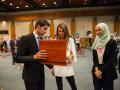 Her Majesty Queen Rania Al Abdullah checks on youth projects at the I Know Business (IKB) award competition day. Amman, Jordan/ September 8, 2014 جلالة الملكة رانيا العبدالله تتابع جانباً من مشاريع الطلاب خلال مرحلة التطبيق العملي لجائزة آيكبي للأعمال في …