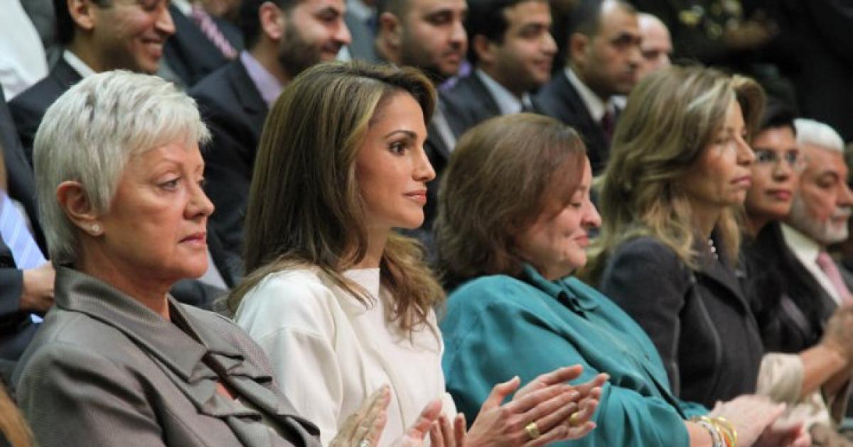 الملكة رانيا مع عدد من أصحاب السمو الأمراء والأميرات يستمعون إلى جلالة الملكة عبدالله الثاني يلقي خطاب العرش السامي والذي افتتح به الدورة العادية الأولى لمجلس الأمة السادس عشر
