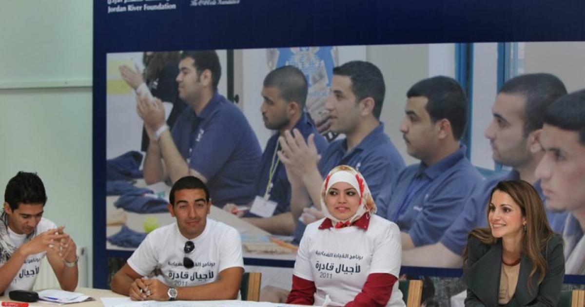 Her Majesty Queen Rania Al Abdullah at a workshop held for participants of the Youth Leadership Program.