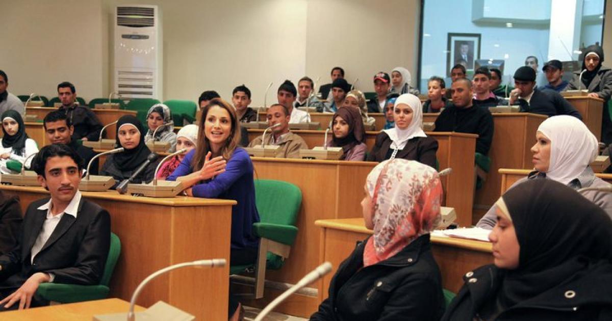 Her Majesty Queen Rania Al Abdullah attends part of Children City Council assembly where members were discussing the Terms of Reference for community committees and their roles in serving communities in districts. The council includes 158 elected students from 9 areas in Amman, who come from public, private and UNRWA schools.