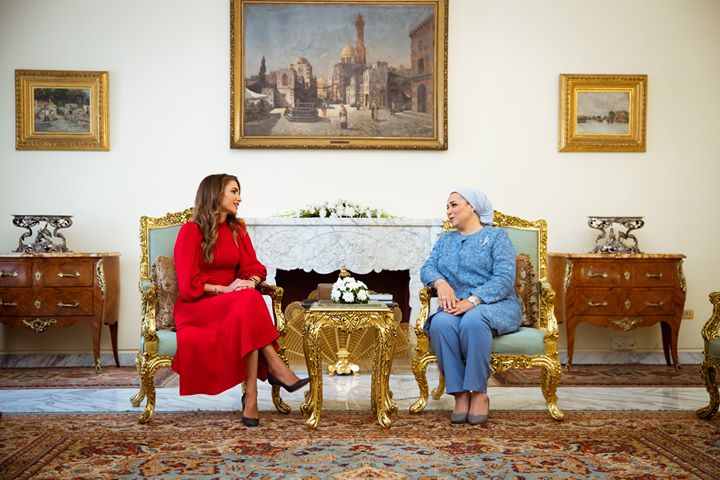 Their Majesties King Abdullah II and Queen Rania Al Abdullah with Egyptian President Abdel Fattah El Sisi, and his wife Mrs. Entissar El Sisi during a visit to Egypt