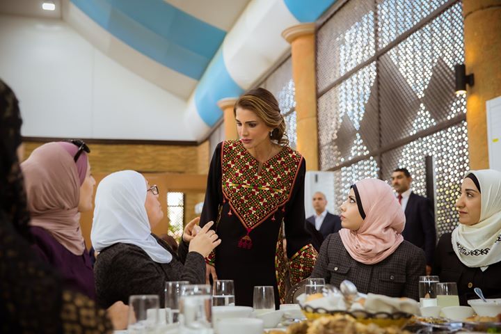 Queen Rania during a visit to Women of Al Balqa’s Himmeh Charity Association