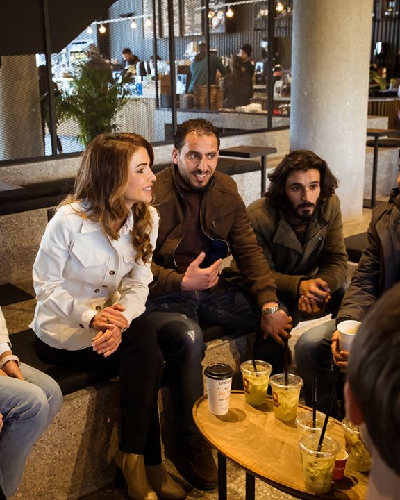 Queen Rania meets with a group of youth from Al Tafileh who are receiving training in software development under scholarships from The Queen Rania Foundation and Abdul Aziz Al Ghurair School of Advanced Technology in Amman