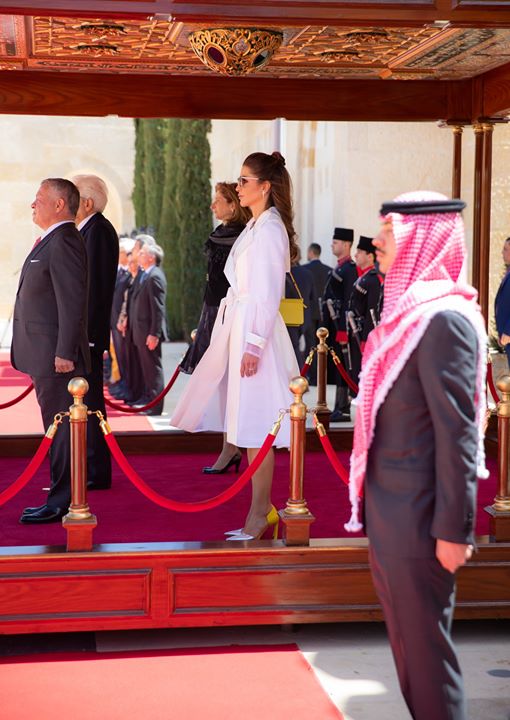 جلالة الملك عبدالله الثاني وجلالة الملكة رانيا وولي العهد سمو الأمير الحسين خلال استقبال الرئيس الإيطالي سيرجيو ماتاريلا وابنته سيدة إيطاليا الأولى لورا ماتاريلا في قصر الحسينية