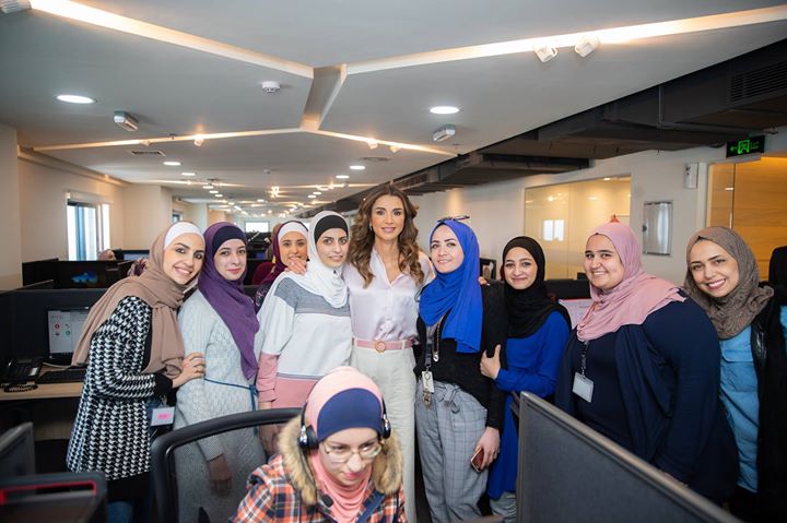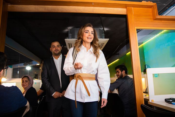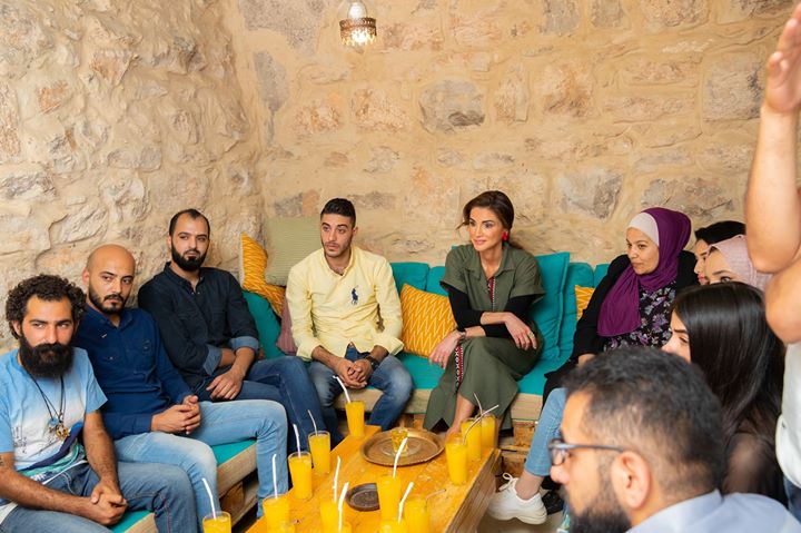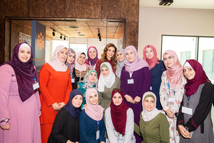 الملكة رانيا خلال لقاء مع مجموعة من الشباب الأردنيين الرياديين