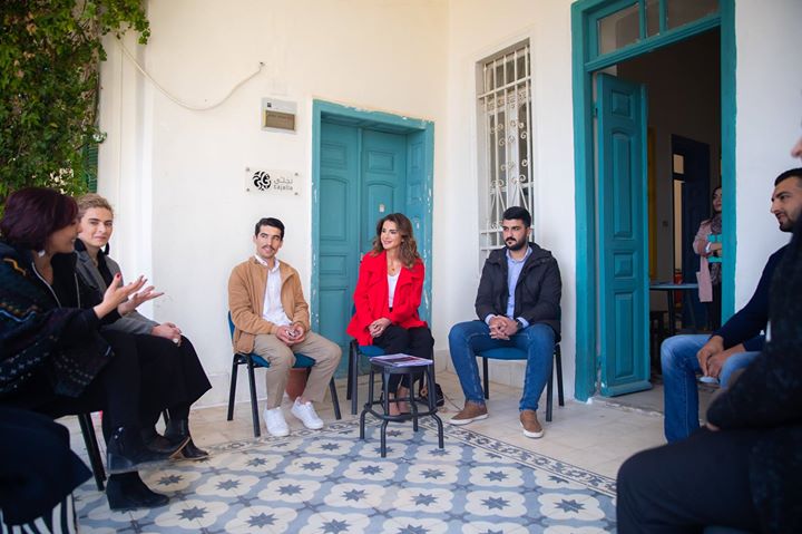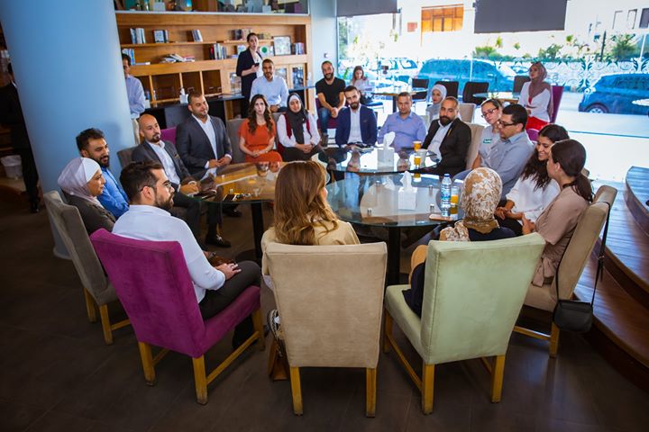 Queen Rania meets with a group of young Jordanian entrepreneurs