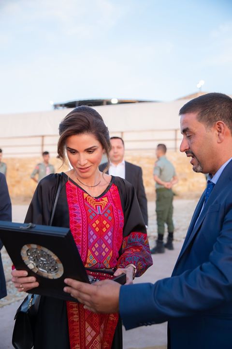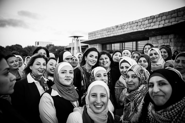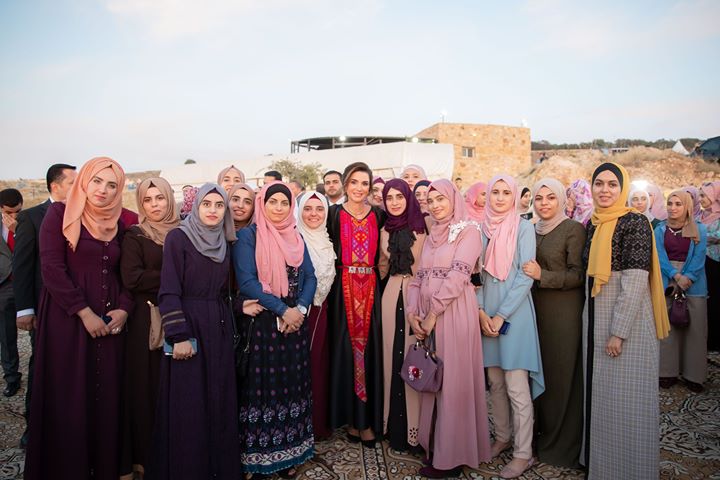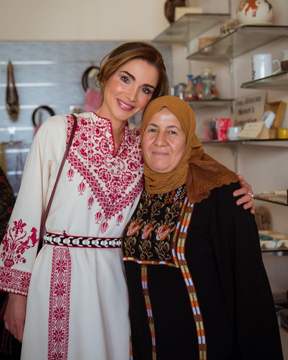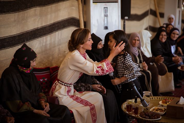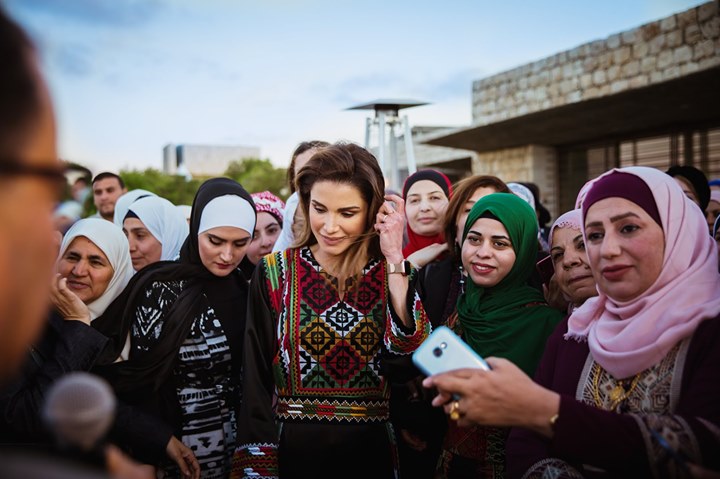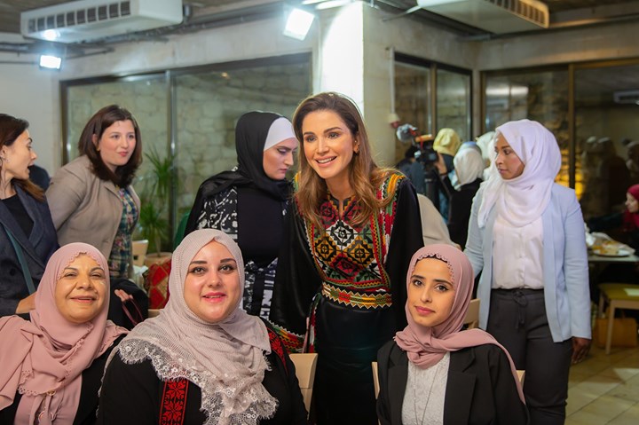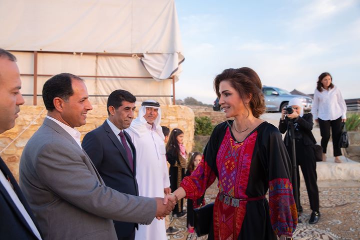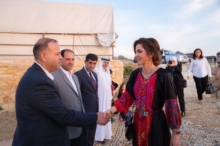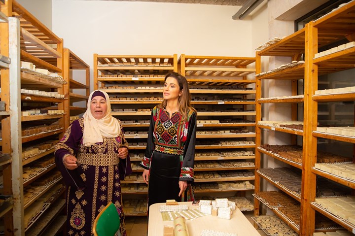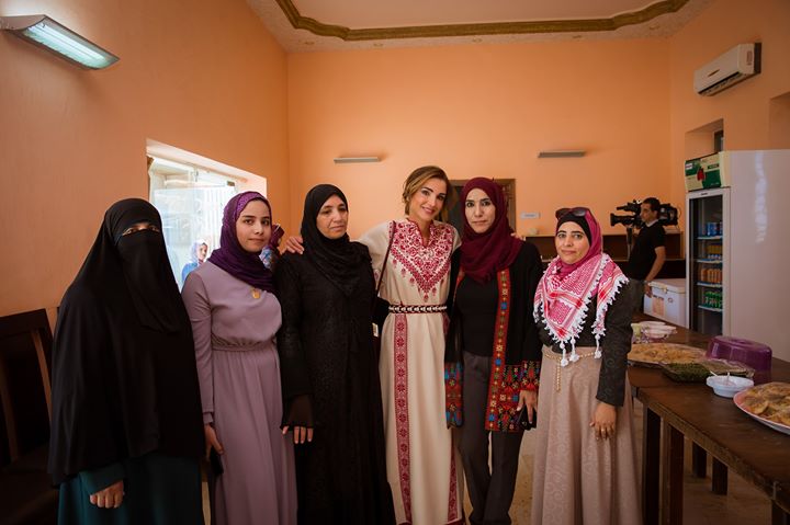 Queen Rania during a visit to Umm Ar-Rasas and meeting with members of the Umm Ar-Rasas Women Cooperative Society