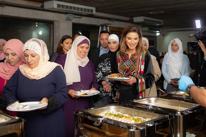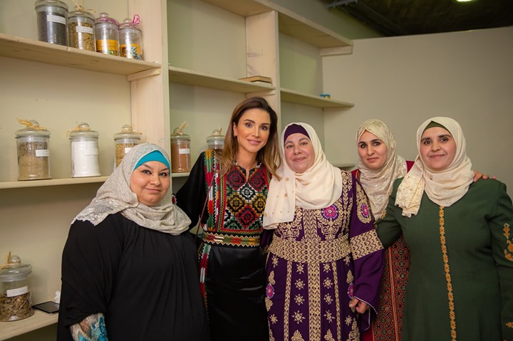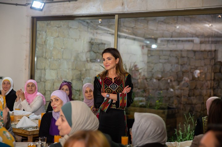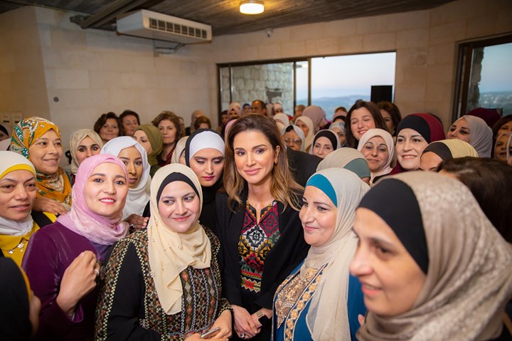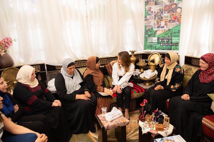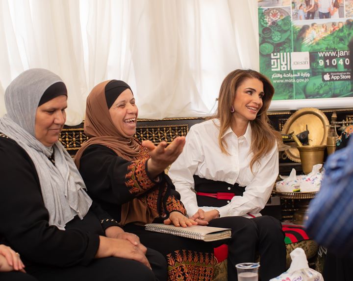 الملكة رانيا خلال زيارة إلى أم الرصاص ولقاء مع سيدات من جمعية أم الرصاص التعاونية