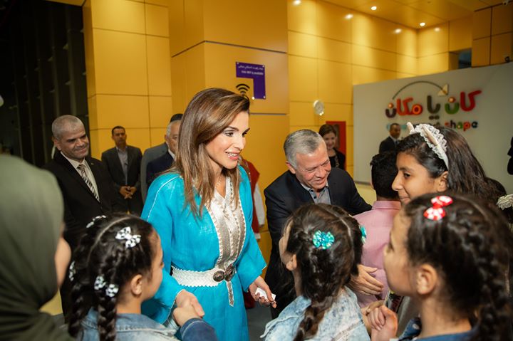 الملكة رانيا خلال زيارة لأكاديمية الملكة رانيا لتدريب المعلمين