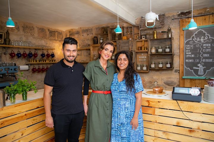 Queen Rania during a visit to Kawon Bookshop in Madaba